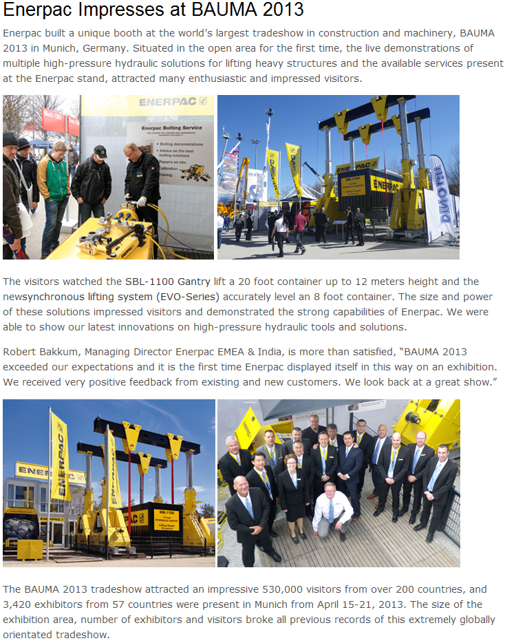 您現在的位置:首頁 ? 新聞中心 ? 新聞資訊 ? 恩派克Enerpac參加2013年寶馬展