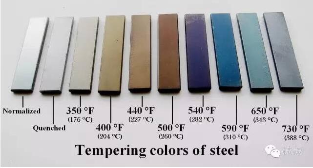 如果是高溫退火導致顏色變化,那具體需要多高的溫度呢,我們先看一下鋼鐵顏色與退火溫度的關(guān)系表