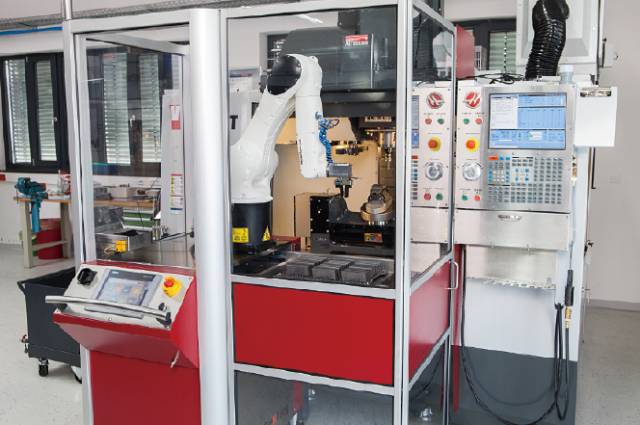 在活動機器人單元中,庫卡KR AGILUS型機器人在加工中心承擔裝料卸料工作。