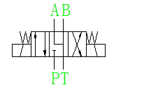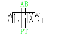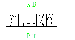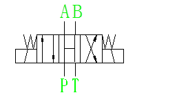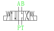 在中位時,進油口P與工作油口A與回油口T連通,而另一工作油口B封閉。