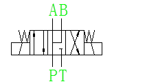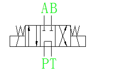 在中位時,工作油口A、B關(guān)閉,進油口P、回油口T直接相連。