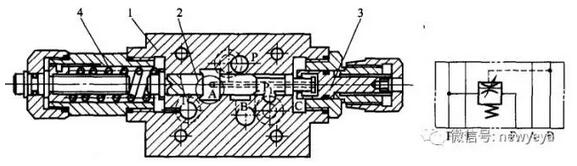 1-閥體;2-閥芯;3-節流閥調節桿;4-順序閥彈簧