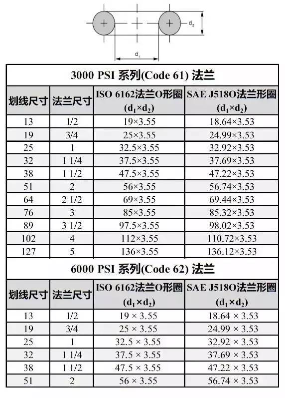 ISO 6162法蘭螺栓為公制,SAE J518法蘭螺栓為英制,3000 PSI 系列(Code 61) 為輕型法蘭,6000 PSI 系列(Code 62)為重型法蘭。