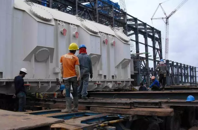 中國電建吊裝人在國外的一場變壓器平移工程。原作者很清晰地展現了水平液壓千斤頂與垂直液壓千斤頂的配合平移安裝技術?,F場中外員工通力協作,經過垂直起升與枕木鋪設進行滑移定位,出色了完成了這臺國產200噸重量的變壓器的安裝就位。