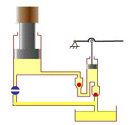 在平衡的系統中,比較小的活塞上面施加的壓力比較小,而大的活塞上施加的壓力也比較大,這樣能夠保持液體的靜止。所以通過液體的傳遞,可以得到不同端上的不同的壓力,這樣就可以達到一個變換的目的。
